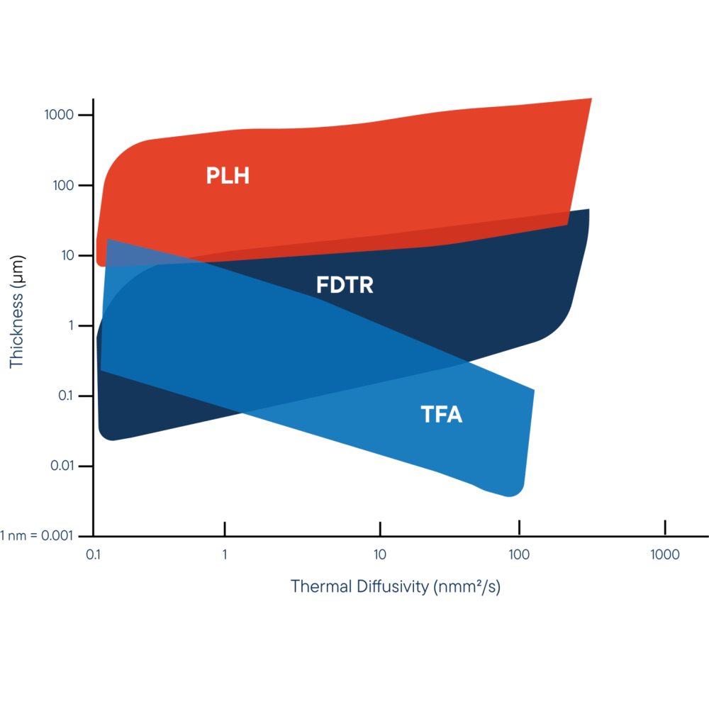 - Анализ межфазного теплового сопротивления (TBC): определение теплопроводности на границе раздела между пленкой и подложкой — критически важный параметр для многослойных структур.