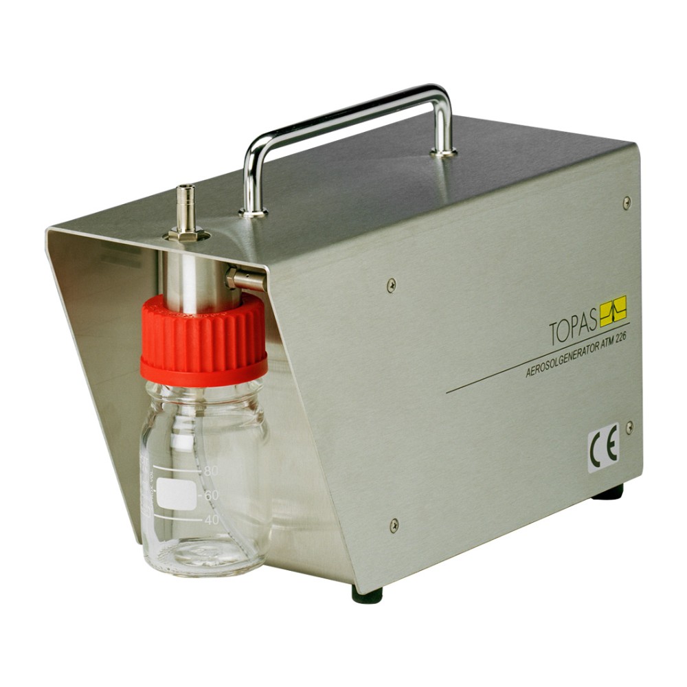 Для таких измерений и испытаний требуется подходящий испытательный аэрозоль. Поэтому в директиве VDI 3491 предлагается аэрозольный генератор для создания тестовых аэрозолей с определенными свойствами, такой как ATM 226. Из-за большого количества образующихся частиц с распределением размеров частиц, основанным на размере частиц с наибольшей проникающей способностью (MPPS) фильтра, обнаружение утечек в Системе возможно быстро и безопасно. При использовании маслянистого аэрозольного вещества (типа ДЭГС, ПАО) генератор аэрозоля выдает сферические частицы преимущественно размером 0,1…0,5 мкм с расчетным временем пребывания. Это означает, что фильтрующий материал практически не загрязняется дополнительно.