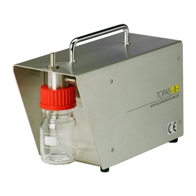 Сердцем генераторов серии ATM является распылитель нового типа, полностью изготовленный из нержавеющей стали. Это двухкомпонентная форсунка, работающая по принципу инжектора и совмещенная с ударным сепаратором. Это гарантирует, что большие капли (более 1 мкм), образующиеся во время распыления, немедленно возвращаются обратно. С увеличением объемных потоков улучшается предел сепарации ударного сепаратора; однако это оказывает лишь незначительное влияние на распределение частиц аэрозоля по размерам в субмикронном диапазоне. Сжатый воздух, необходимый для распыления жидкости, очищается фильтром HEPA.