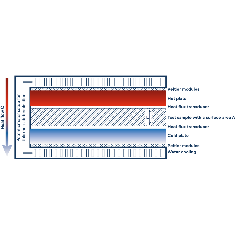 Прибор LINSEIS HFM L57 базируется на методе стационарного теплового потока (steady-state heat flow method) и соответствует ведущим международным стандартам: ASTM C518, ISO 8301, JIS A1412, DIN EN 12664 и DIN 12667. Это делает его надежным решением для аккредитованных лабораторий и промышленных предприятий, где требуется юридически значимая и воспроизводимая метрология.