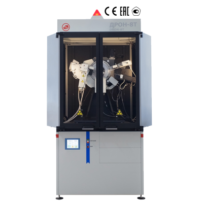 Рентгеновский дифрактометр ДРОН-8 производства компании "Буревестник", которая является одним из ведущих мировых производителей рентгеновских аналитических систем. Рентгеновское оборудование компании работает по всему миру. Не так давно компания представила свою новую модель дифрактометра, на разработку которой у компании ушло несколько лет. Этот прибор флагман линейки ДРОНов восьмой серии. Дифрактометр ДРОН 8Т является одной из самых передовых и многофункциональных моделей на мировой рынке, а также обладает выдающимися характеристиками. Гониометр является одним из основных узлов данного вида приборов и этот узел у ДРОН 8Т один из самых совершенных среди мировых аналогов. По типу он относится к широкоугольным вертикальным θ-θ гониометрам, и обладает великолепной воспроизводимостью с точностью до 0,0001°. Такая высокая точность просто необходима при исследовании нано и микрообъектов. Необходимо также упомянуть что данный дифрактометр с лёгкостью решает стандартные задачи вроде фазового анализа для изучения химического состава веществ, порошков, или исследований поликристаллических веществ, а также позволяет получать самые точные данные в результате рентгеноструктурного анализа.