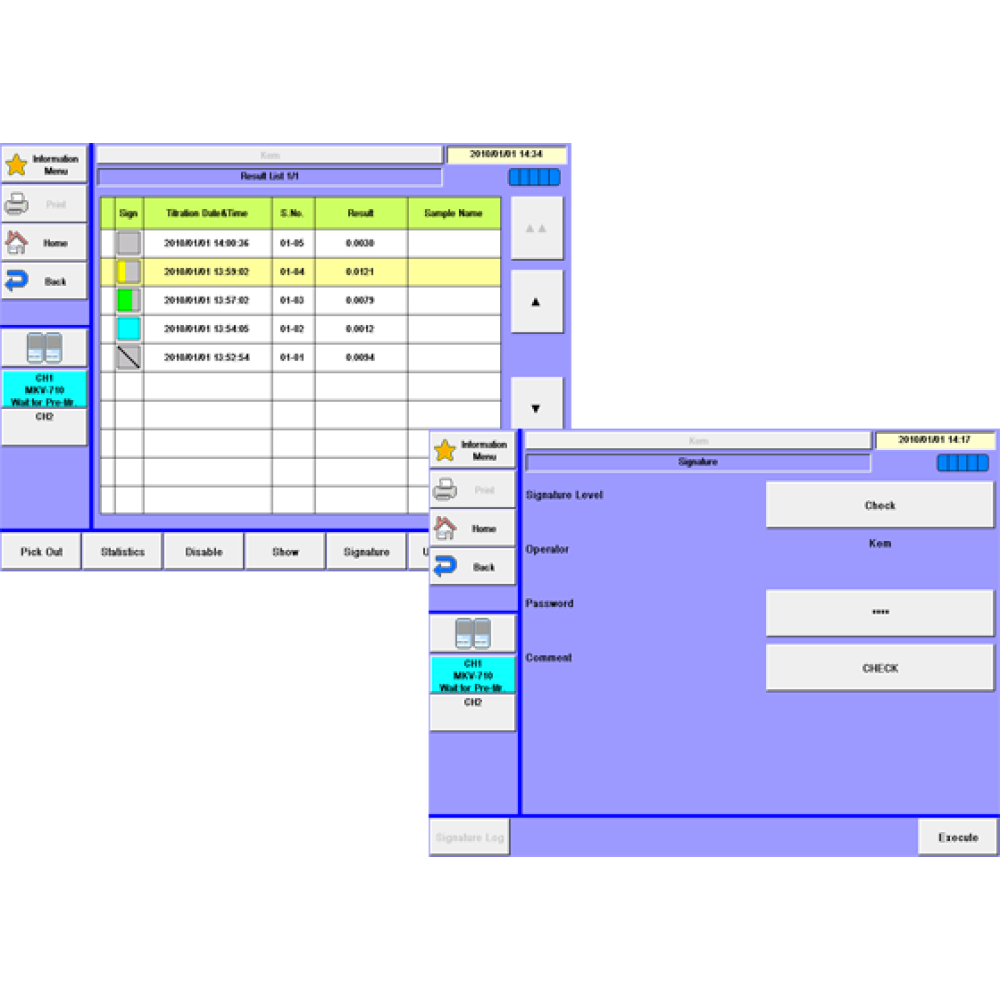 - Аудит-трайл: все операции, включая запуск анализа, изменение методов и вход/выход пользователей, автоматически записываются в журнал. Общий объем хранения истории операций — до 100 000 записей.